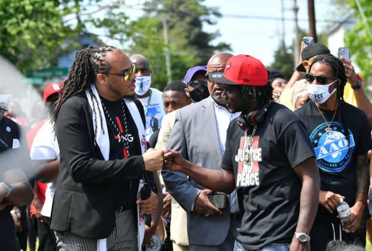 Reverend Greg Drumwright (left) leads a march during a protest after the killing of Andrew Brown Jr. demanding the release of the body camera videos the day before the funeral in Elizabeth City on May 2.
