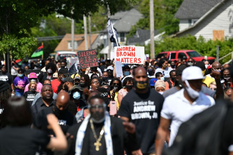 People stage a demonstration after the killing of Andrew Brown Jr. demanding the release of the body camera videos the day before the funeral in Elizabeth City on May 2.
