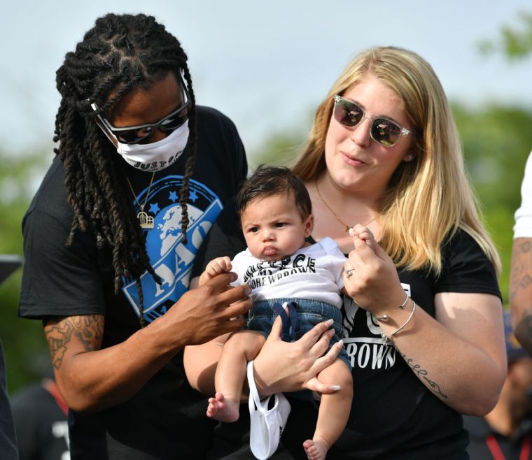 Khalil Ferebee, the son of Andrew Brown, Jr., looks on at his son — Andrew’s grandson — Karter Ferebee on May 2. The march was led by Reverend Greg Drumwright and joined by Reverend Barber and the family of Andrew Brown Jr. as the protesters were asking for justice after Pasquotank County Sheriff’s deputies killed Brown on April 21.