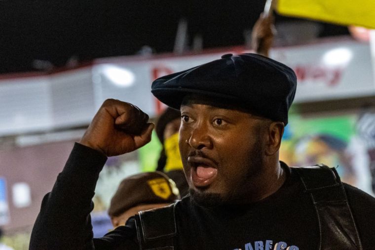 Pictured: Activist Fred Hampton Jr., son of late Black Panther Party leader Fred Hampton, talks to local activists at George Floyd Square on April 5, 2021 in Minneapolis, Minnesota. –