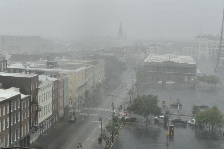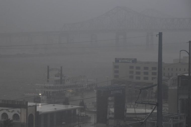 Rain batters downtown New Orleans, Louisiana on August 29, 2021 after Hurricane Ida made landfall in Port Fourchon, 100 miles south of New Orleans, packing maximum sustained winds estimated at 150 miles per hour.