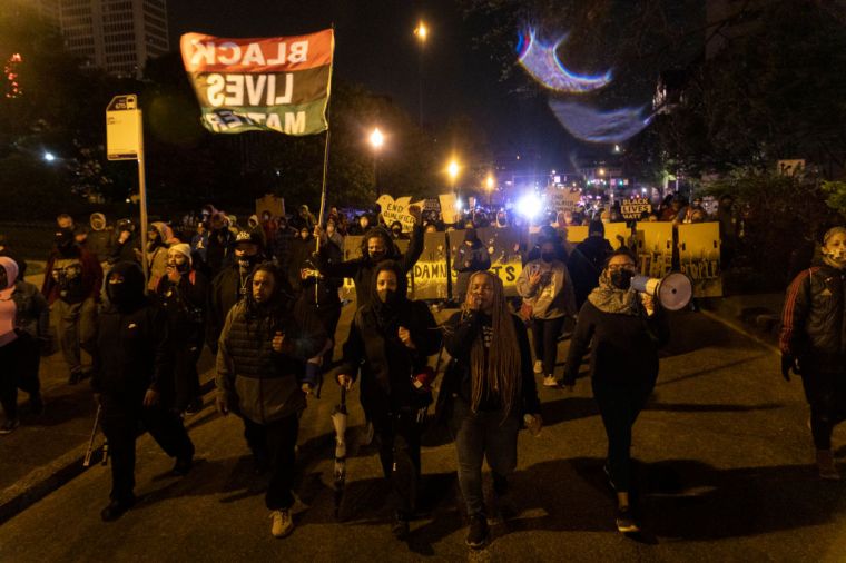 Black Lives Matter activists march through downtown Columbus.
