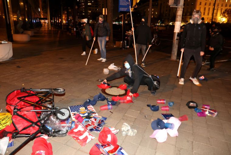 A supporter of Donald Trump is attacked by anti-Trump demonstrators near Black Lives Matter Plaza.