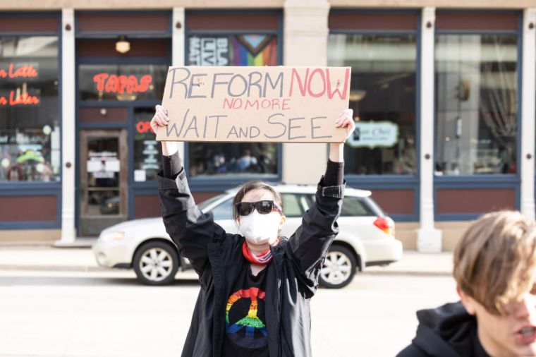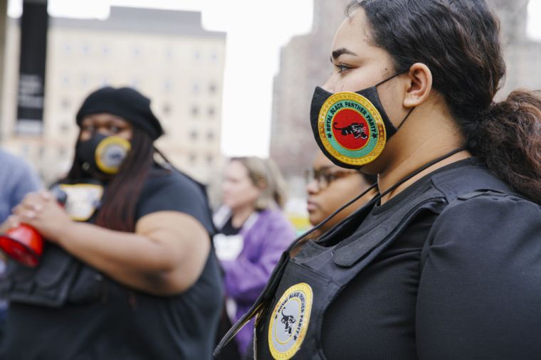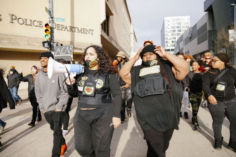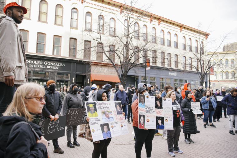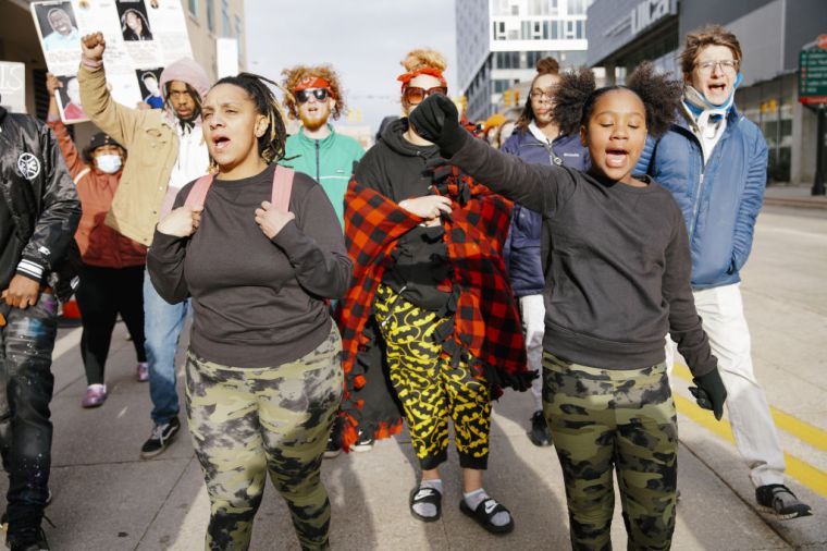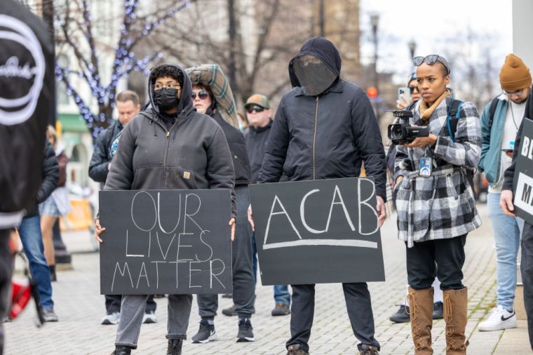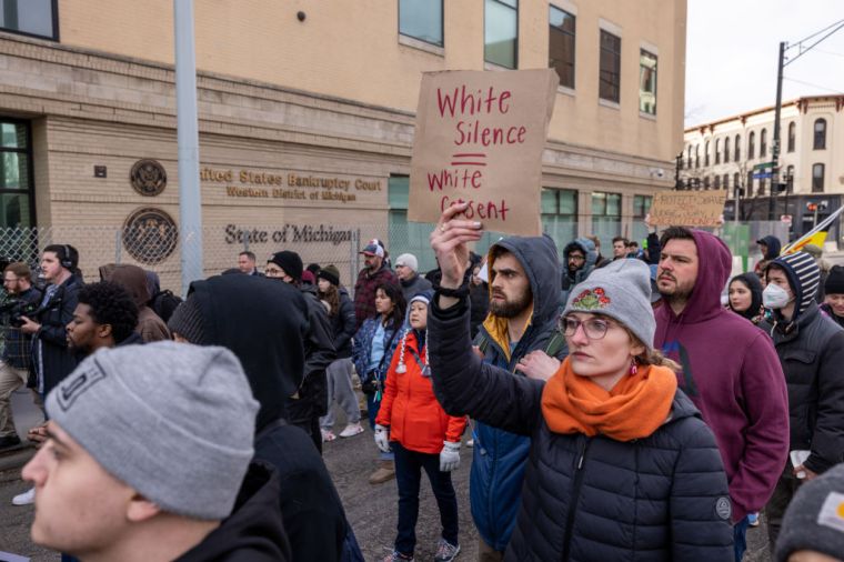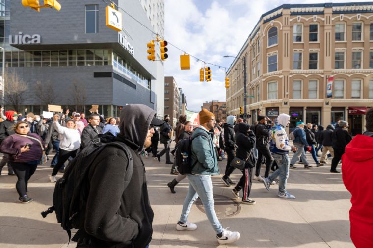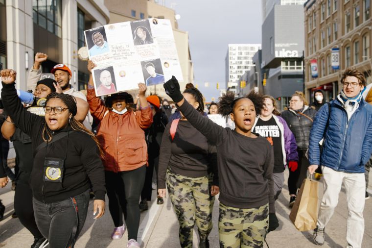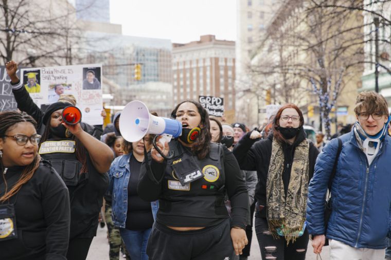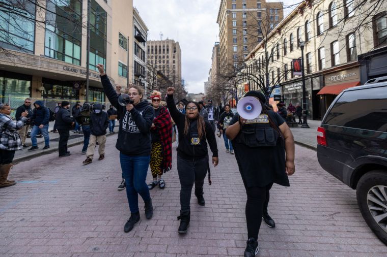 GRAND RAPIDS, MICHIGAN – APRIL 14: People gather during a BLM protest march, in Grand Rapids, Michigan, United States on April 14, 2022.