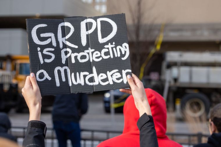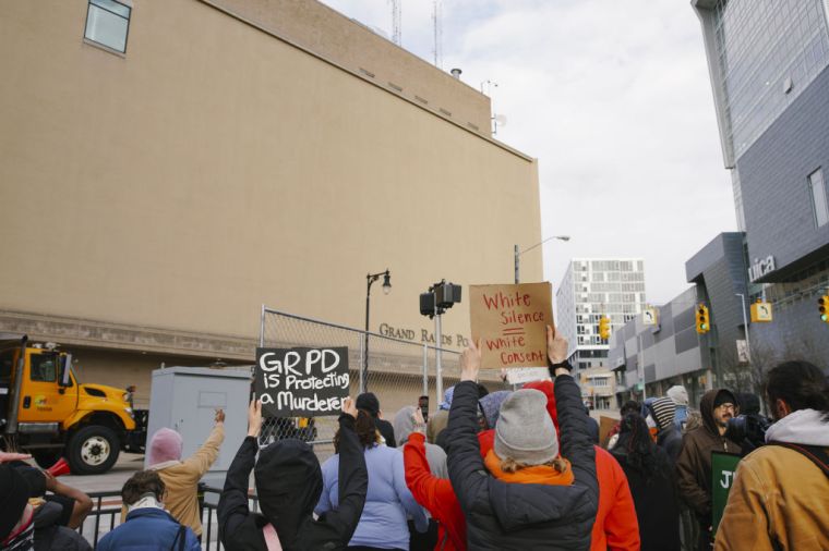 MICHIGAN, USA – APRIL 14: Activists protest against the killing of Patrick Lyoya, who was killed by a Grand Rapids police officer during a traffic stop on April 4, 2022 in Grand Rapids, MI, USA., April 14, 2022.